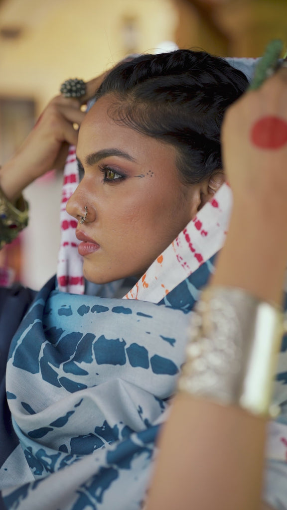 Presenting  An Exclusive Real Modeling Lehenga, Blouse & Dupatta Set crafted beautifully in pure cotton with premium Shibori print, embroidery & mirror work.